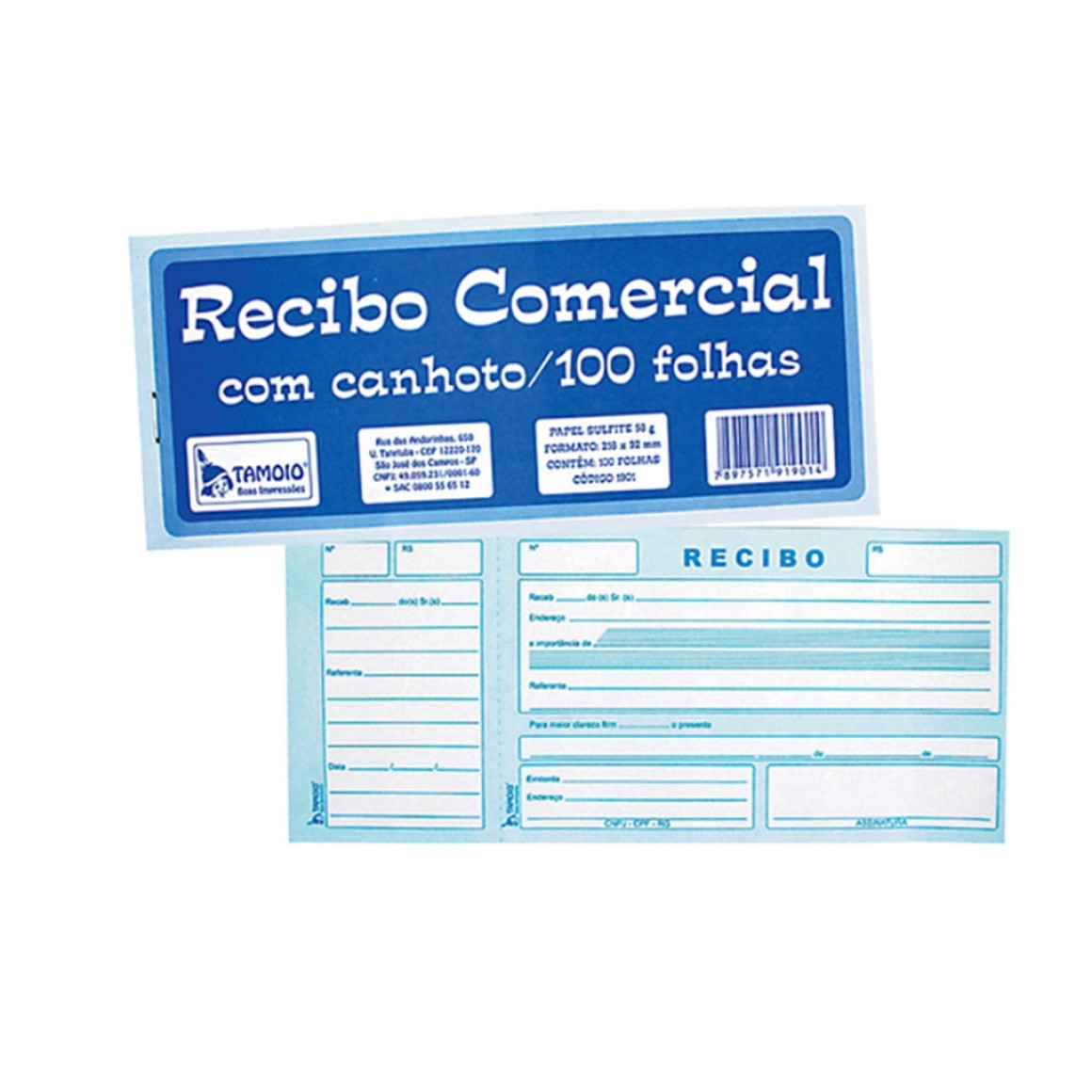 RECIBO COMERCIAL C/CANHOTO 100FLS REF.1901 TAMOIO