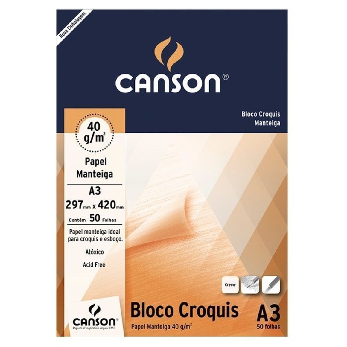 2. BLOCO CROQUIS A3 41GRS MANTEIGA CANSON