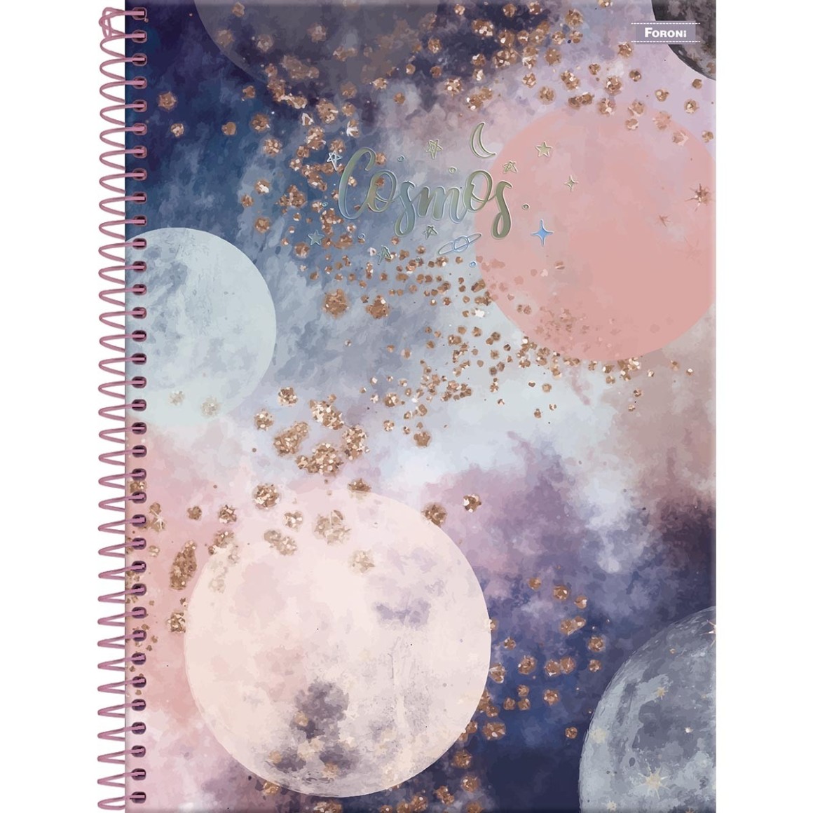 O caderno espiral universitário Cosmos, possui capa dura, bolsa de papel para guardar trabalhos e anotações, adesivos e folhas pautadas. Ideal para o dia a dia na escola ou na faculdade.