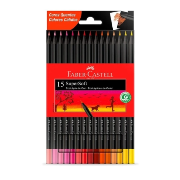 LAPIS DE COR 15 CORES QUENTES SUPERSOFT FABER CASTELL - REF 120715SOFTCQ