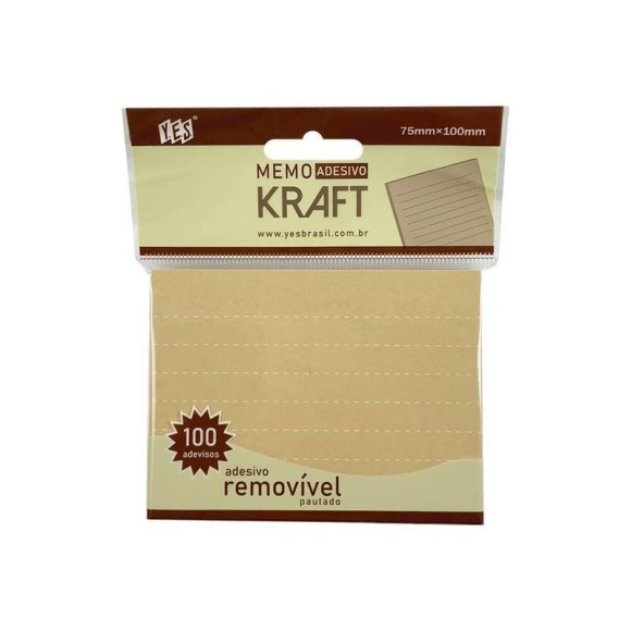 BLOCO ADESIVO 75X100 YES PAUTADO C/100 KRAFT