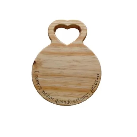 Tábua Redonda de Madeira Alça Coração "É sempre melhor quando estamos juntos"