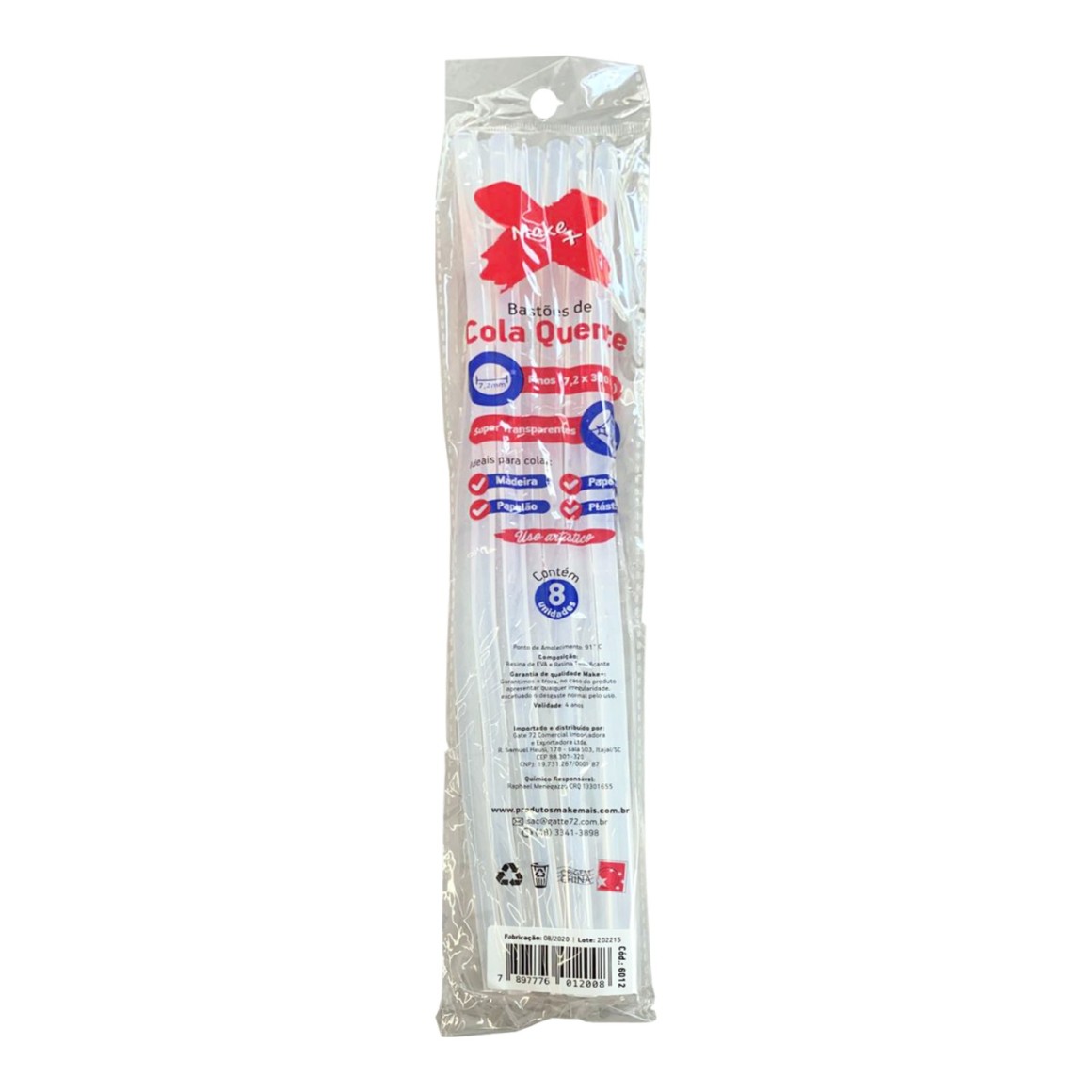 Embalagem com 8 bastões.