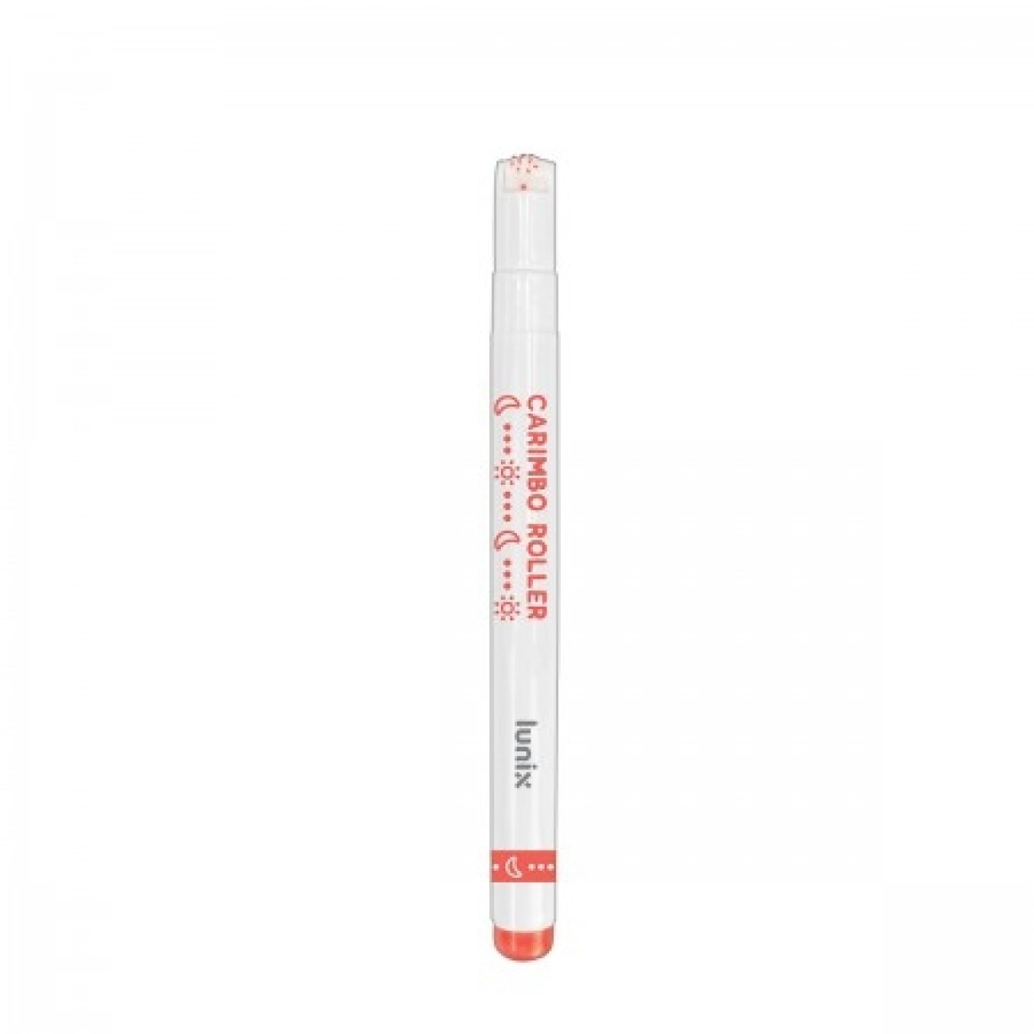 O Carimbo Roller Lunix tem formato de caneta, com tinta à base de água, nas opções de estampas de planeta, patinhas, sol e lua e nuvens.