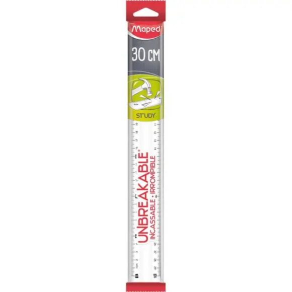 A régua Maped Unbreakable é feita de plástico durável e não quebra.