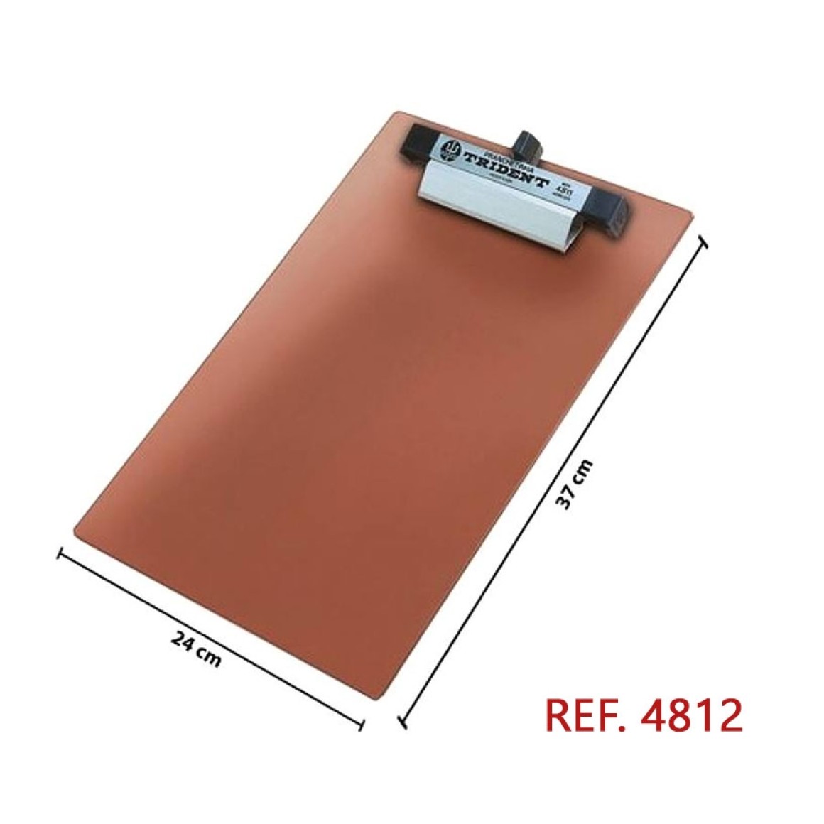Prancheta Trident Madeira Oficio com Pegador Aluminio 4812 Dotada de revolucionário e exclusivo pegador com ajuste constante de pressão, possibilita a fixação de maior número de folhas que as pranchetas tradicionais. Seu fino acabamento e excelente apresentação a tornam ideal para profissionais de alto nível. Disponíveis somente em tamanho ofício (37 x 24 cm).